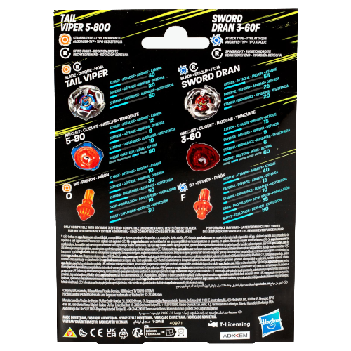 Beyblade X: Tail Viper 5-80O & Sword Dran 3-60F Dual Pack
